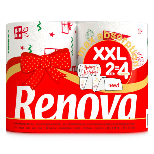 RENOVA KITCHEN TOWEL MAXI ABSORPTION XXL 2 ROLLS XMAS EDITION